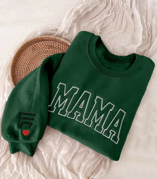 Mama Embroidered Sweater Names on Sleeve